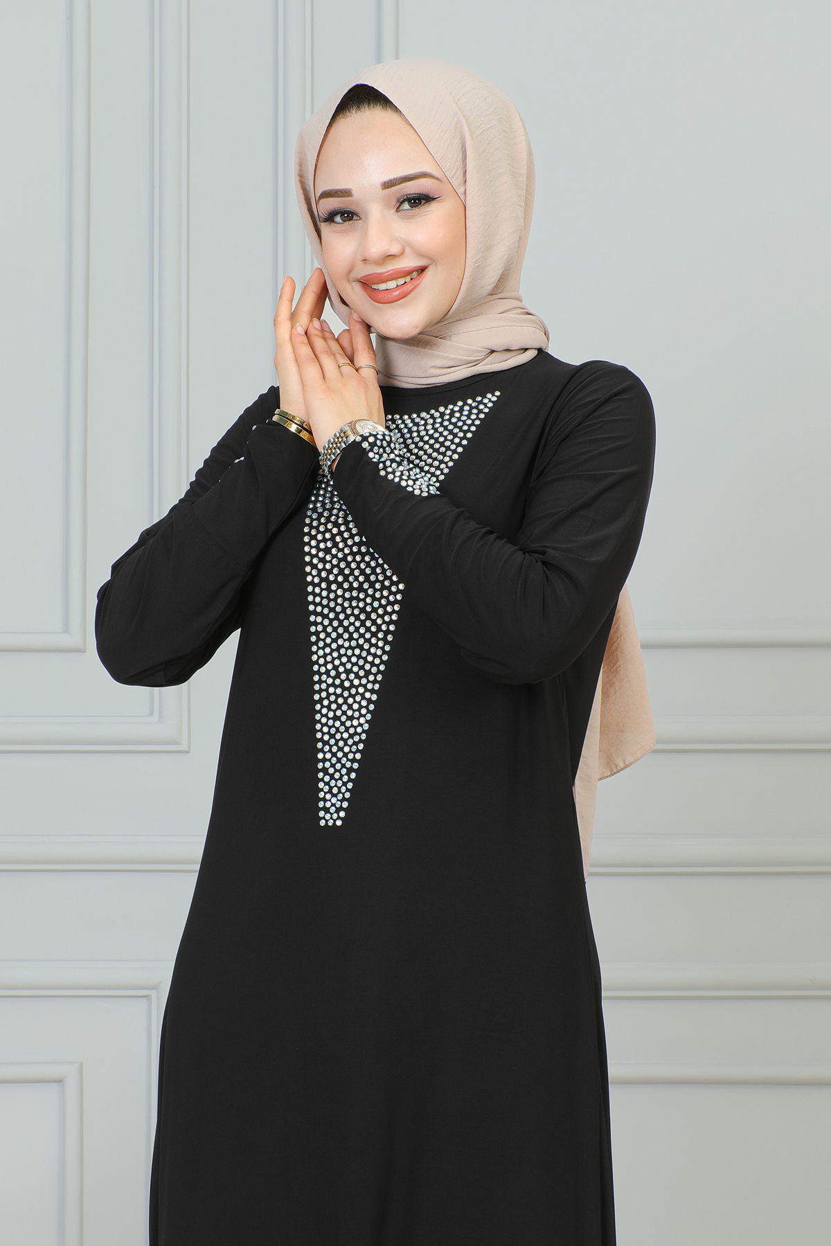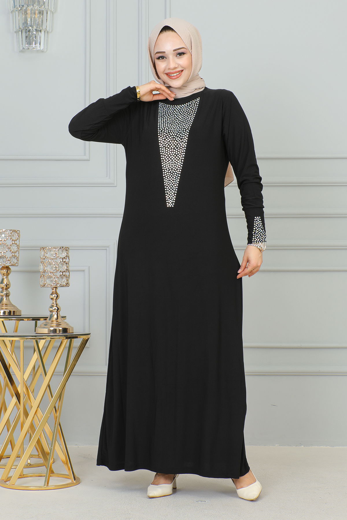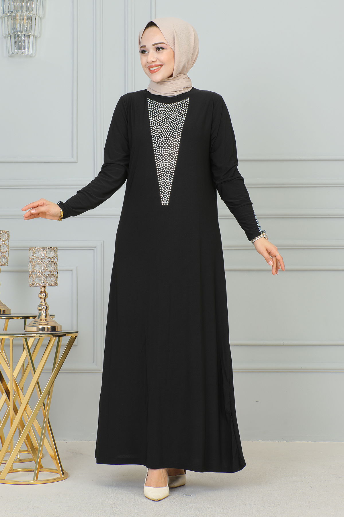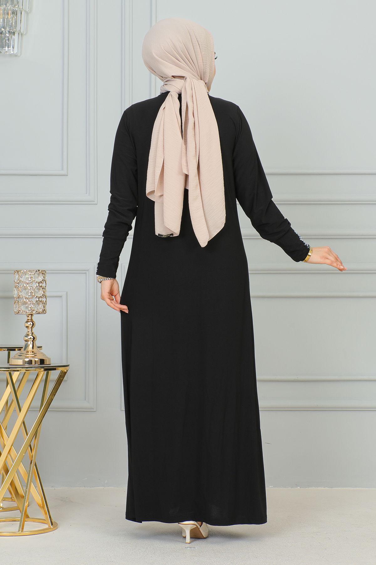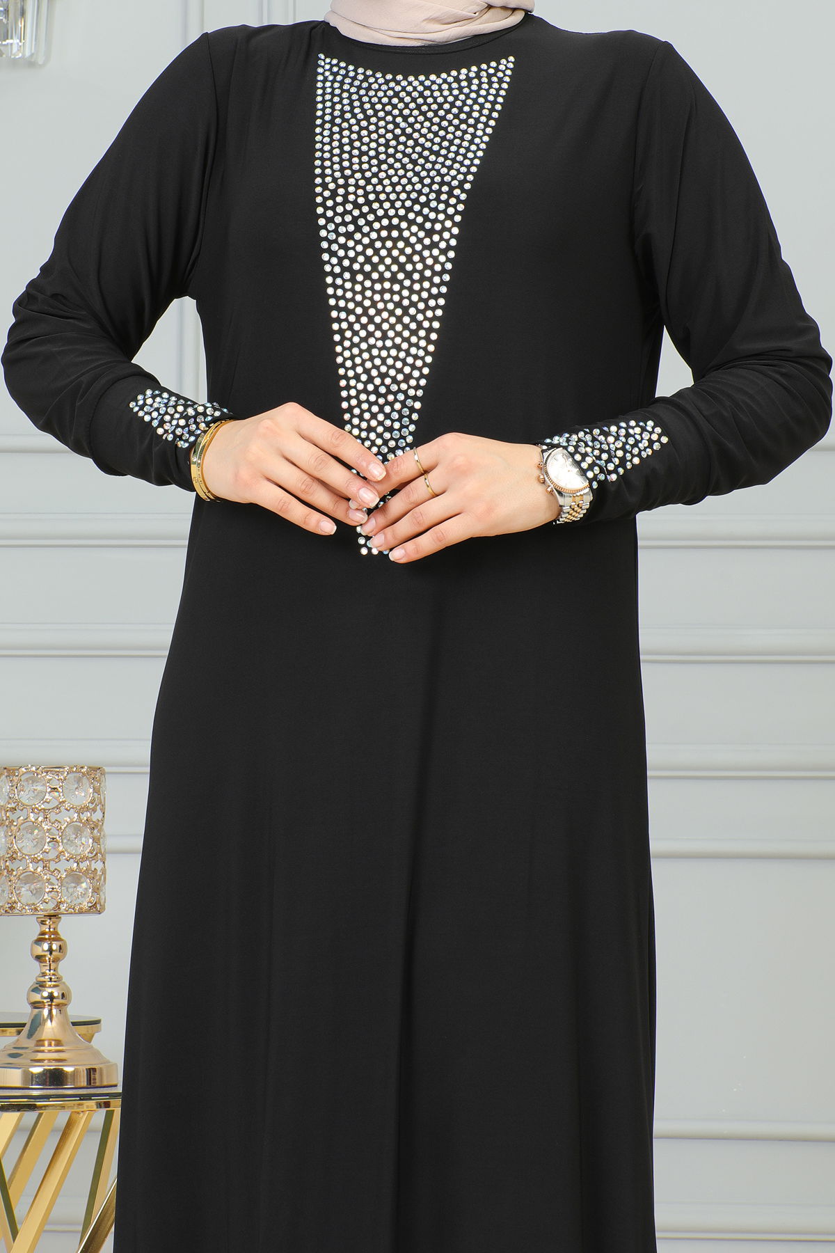 Sandy Ön Ve Kol Taş Detaylı Elbise-3173 Siyah