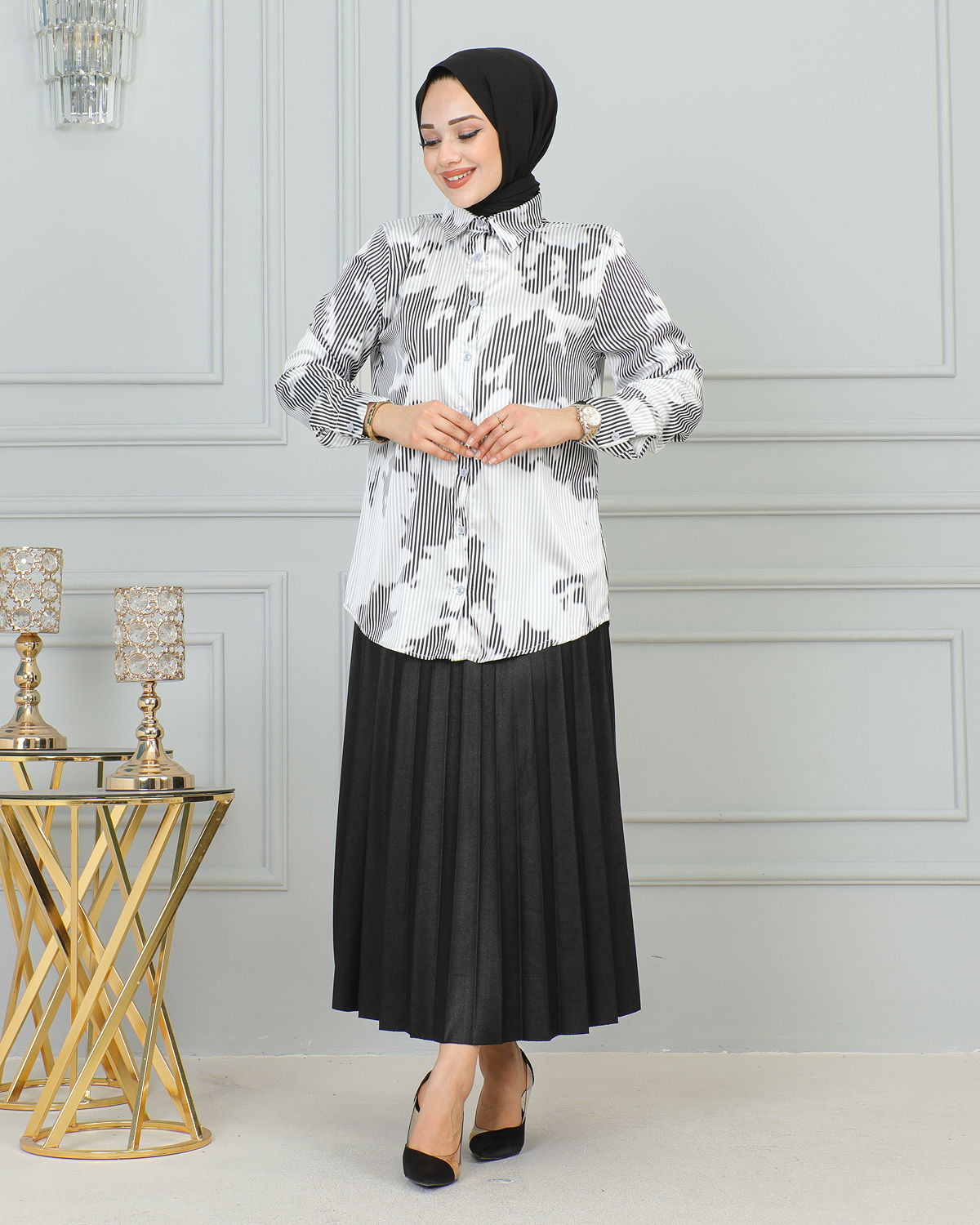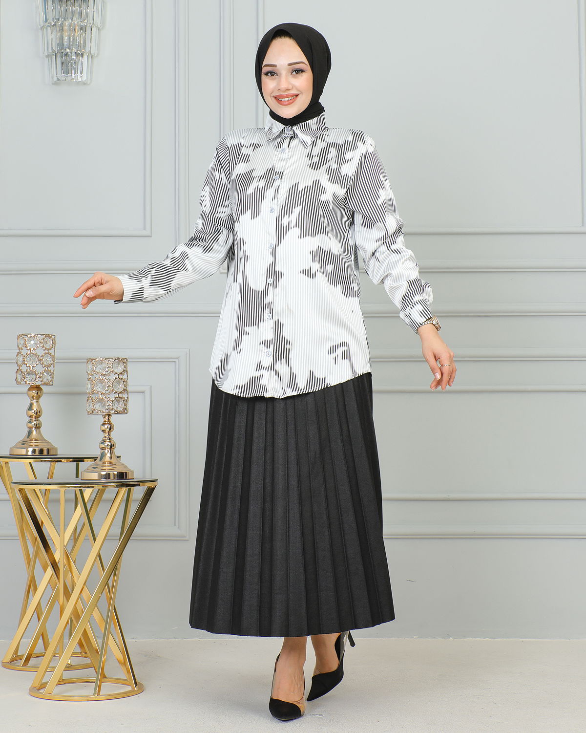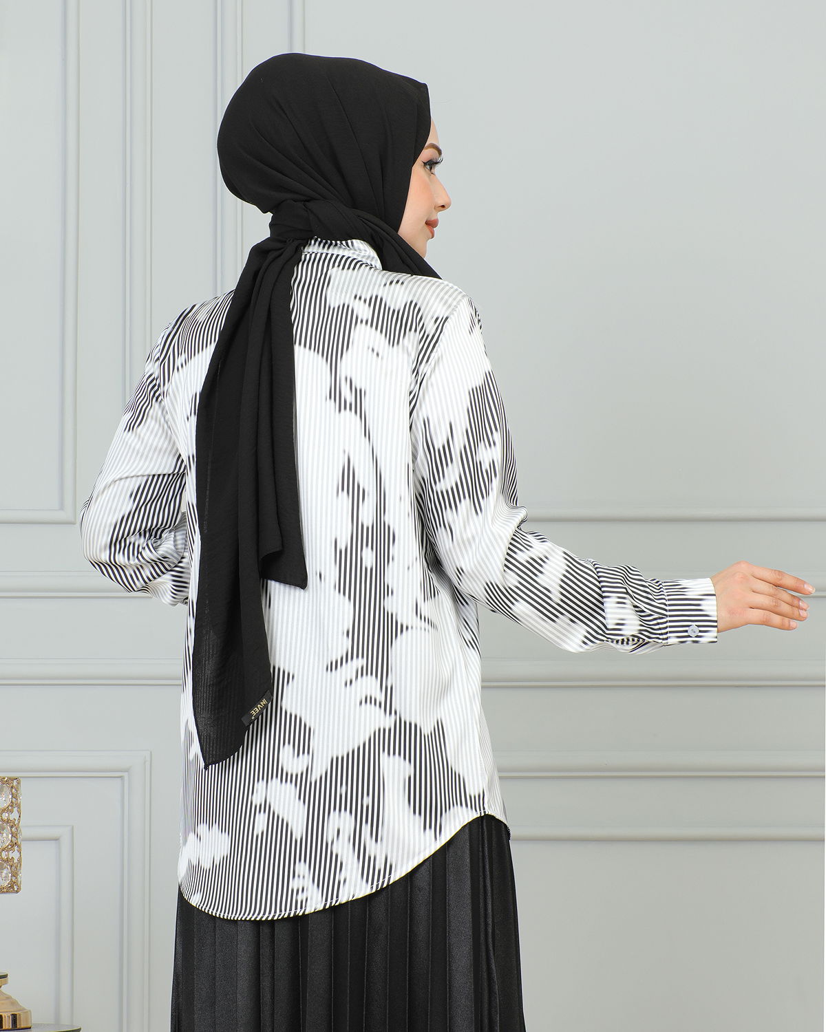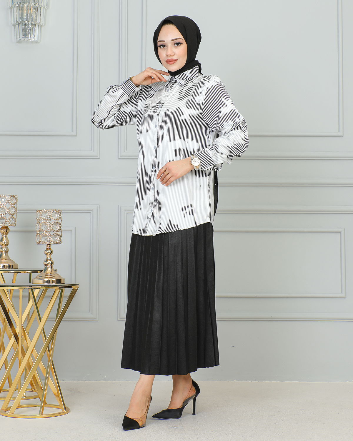 Saten Gömlek-4001 Beyaz-Siyah