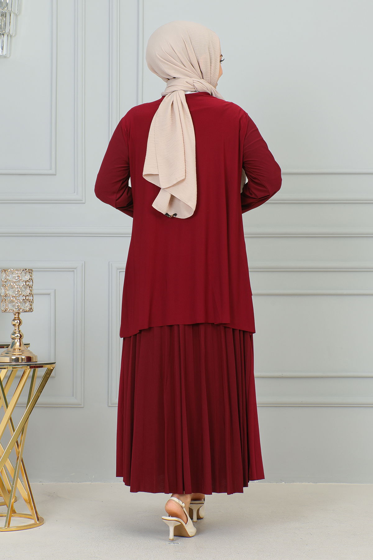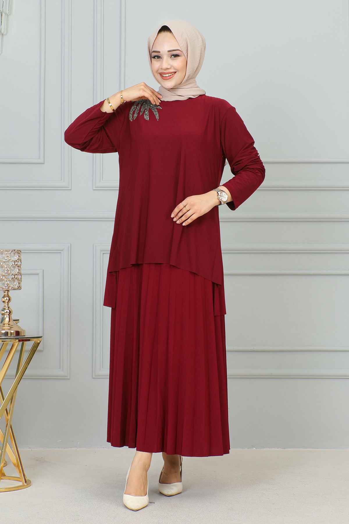 Taş İşlemeli Sandy Etekli Takım-3175 Bordo