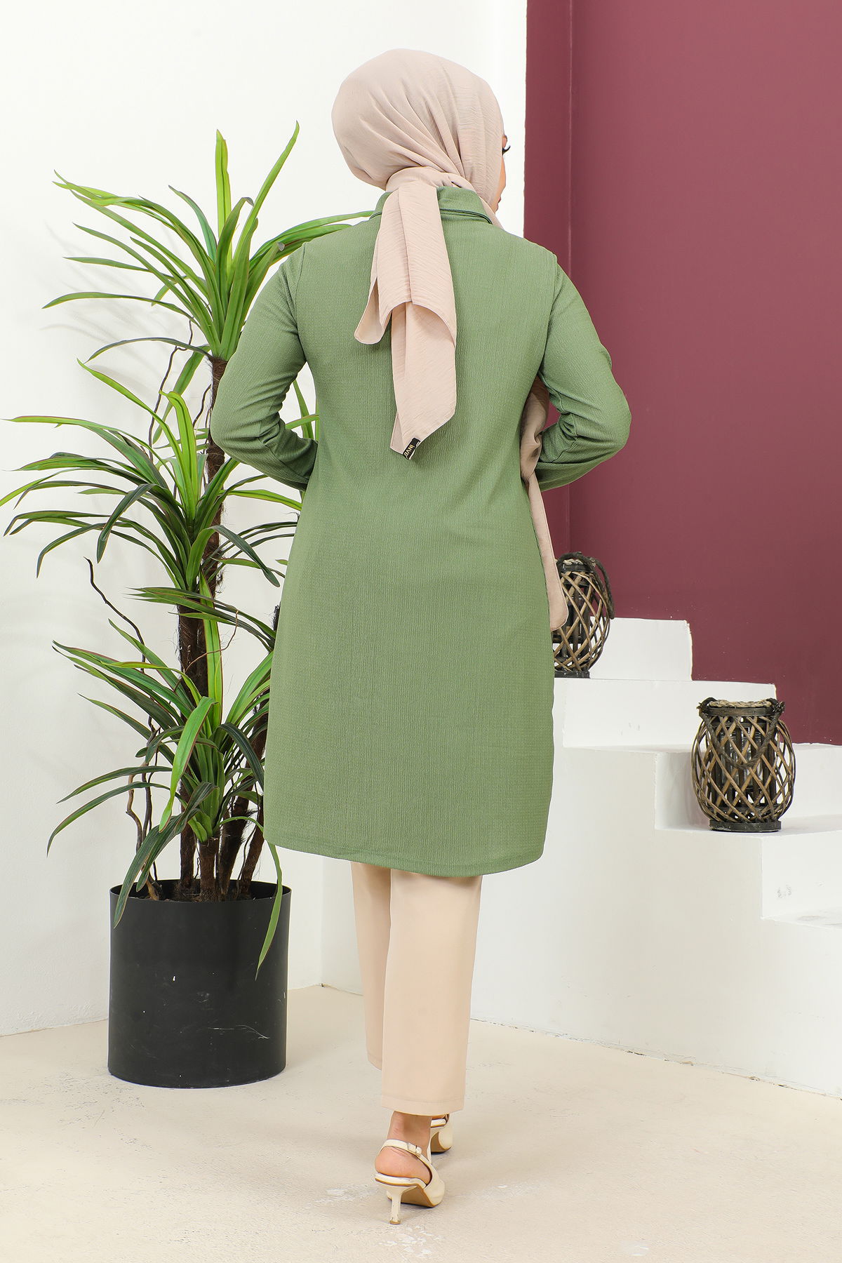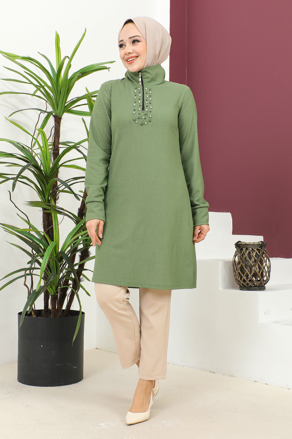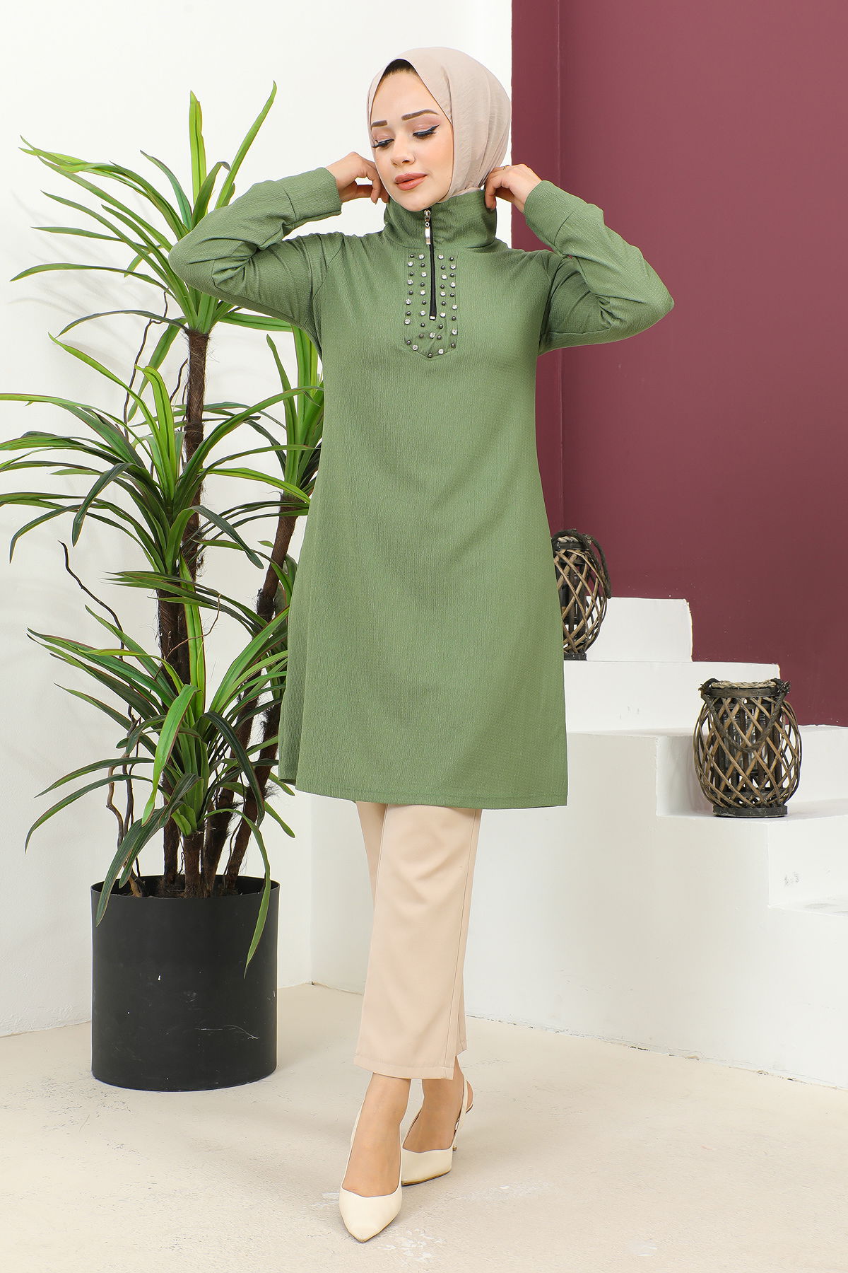 Taş Ve İnci Detaylı Tesettür Tunik-3162 Su yeşili