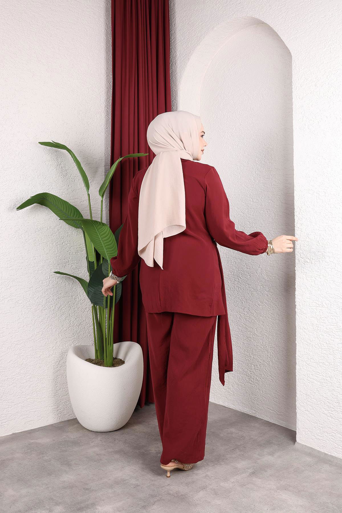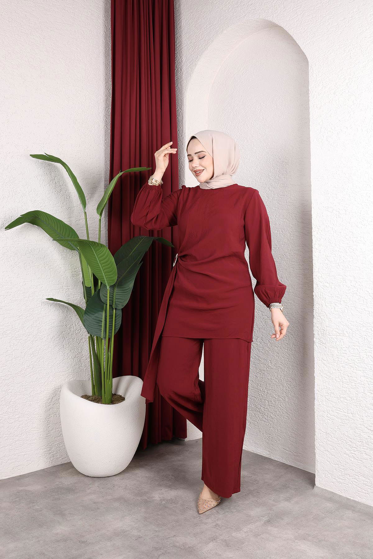 Toka Detaylı Kupra İkili Takım-5095 Bordo