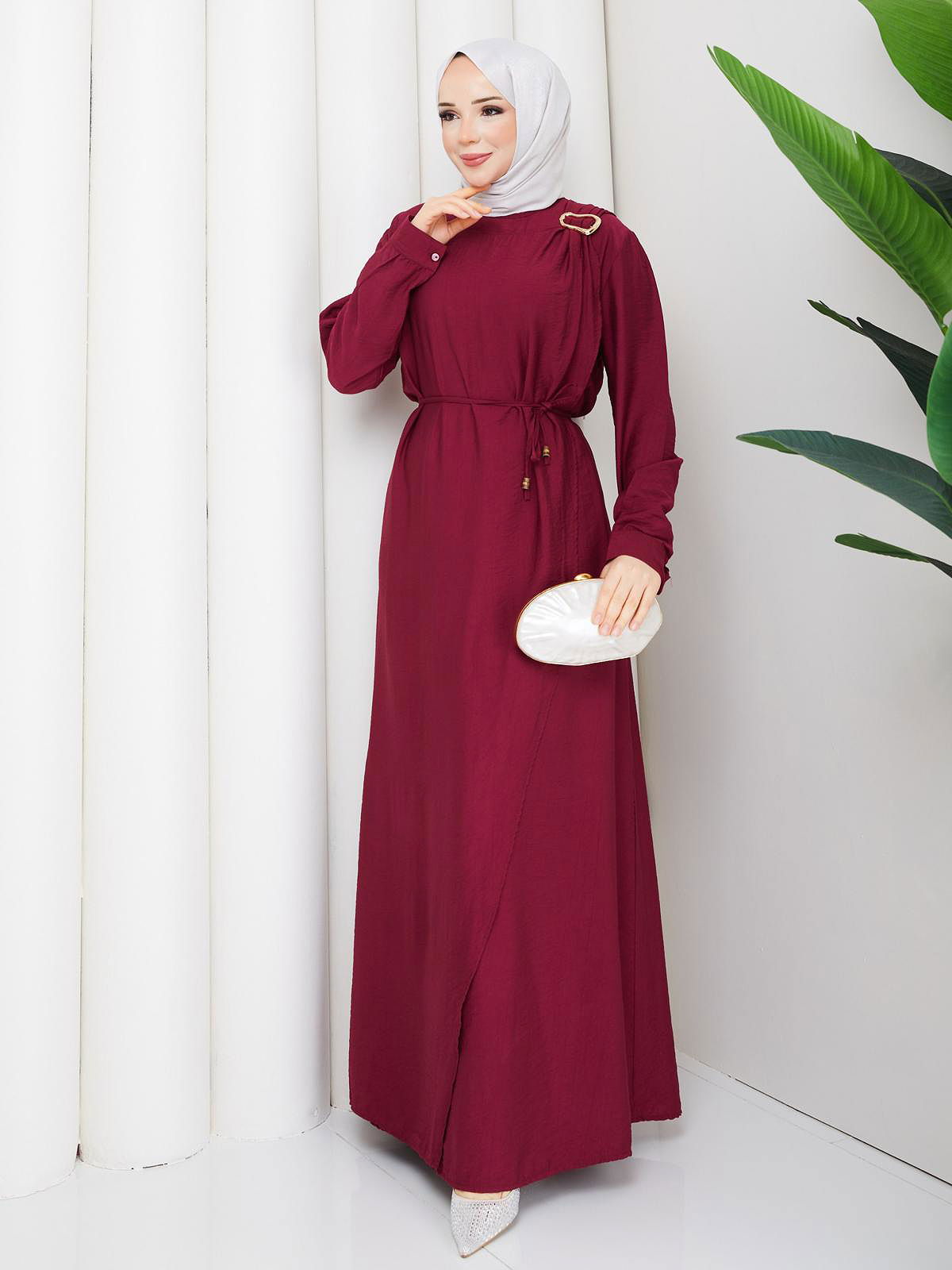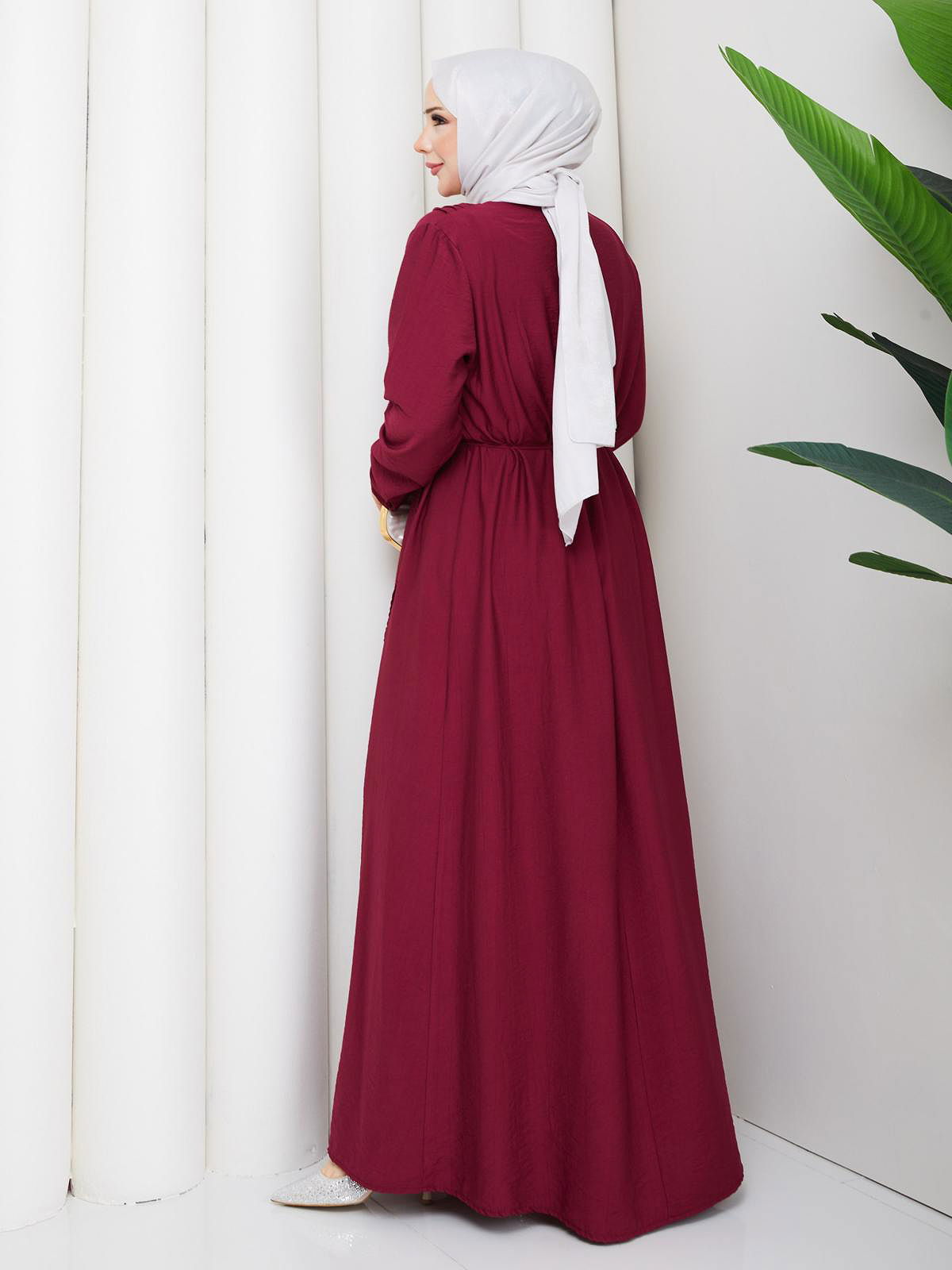 Toka Detaylı Tesettür Elbise-5145 Bordo