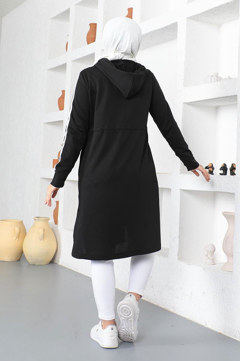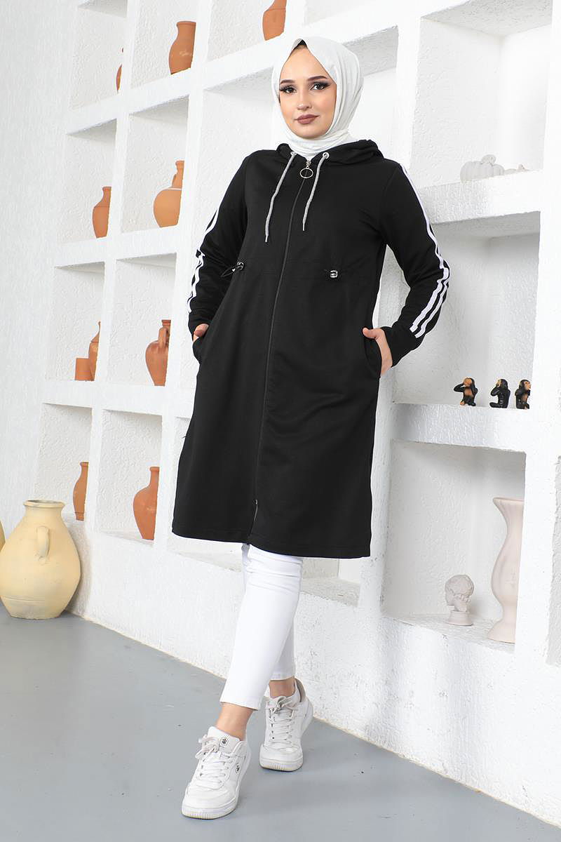 Yanlardan Yırtmaçlı Çizgi Detaylı Tesettür Kap-3112 Siyah