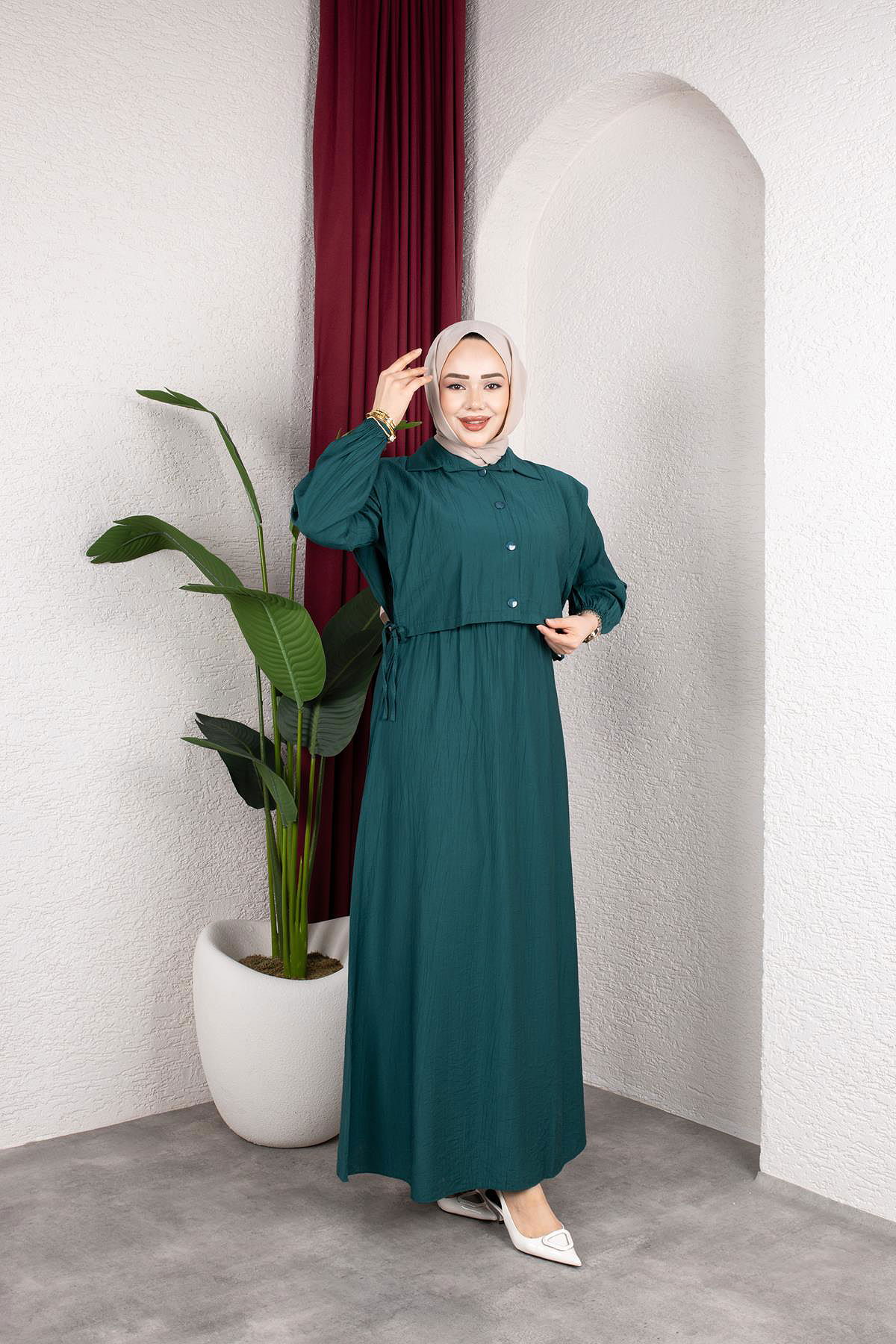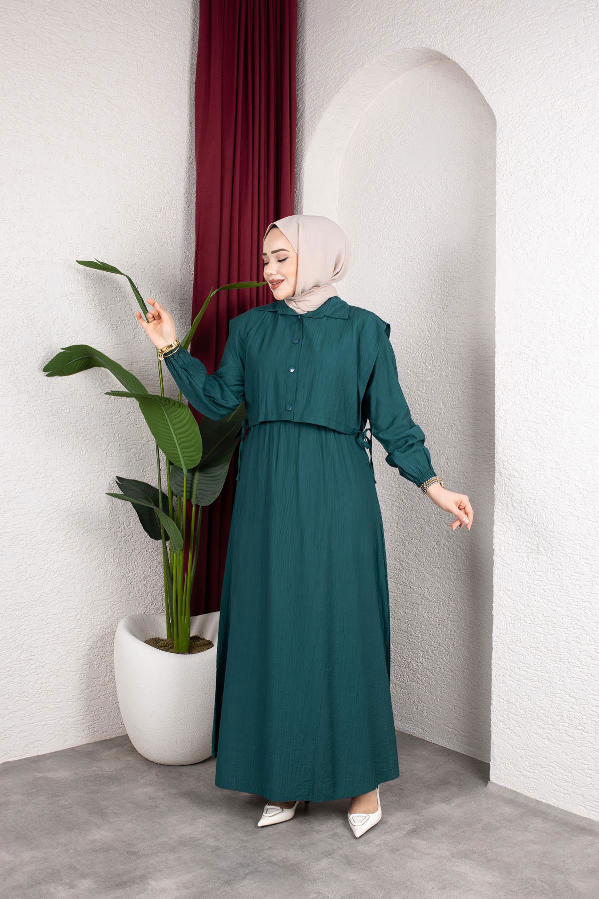 Yelek Görünümlü Modal Elbise-7829 Yeşil