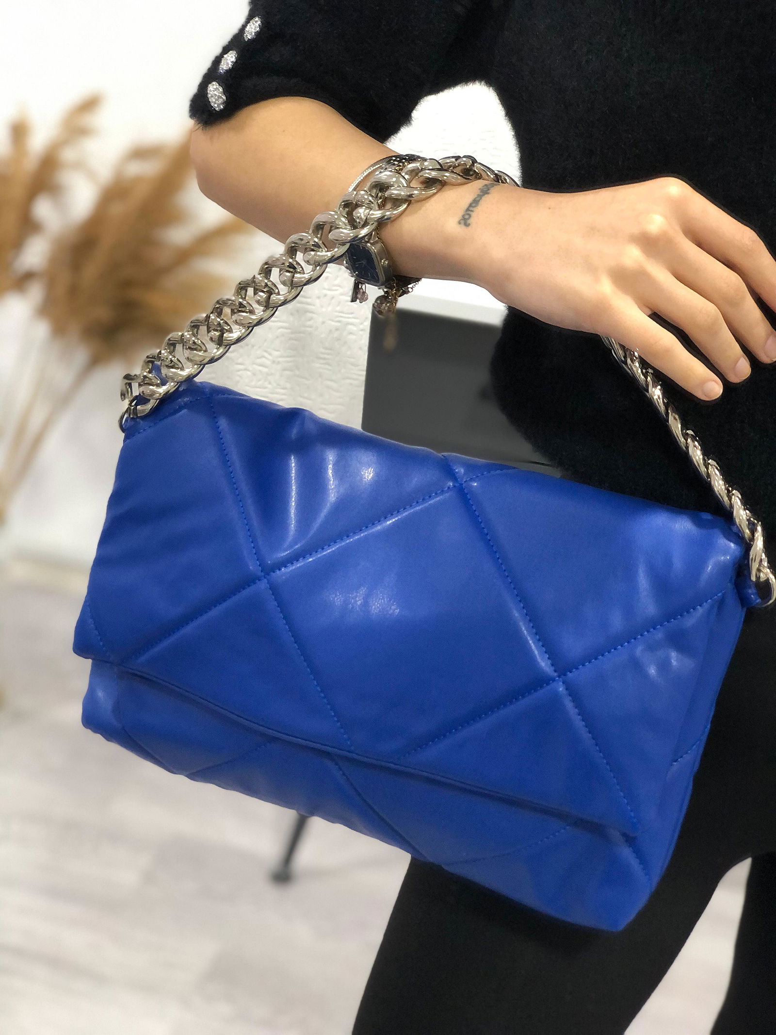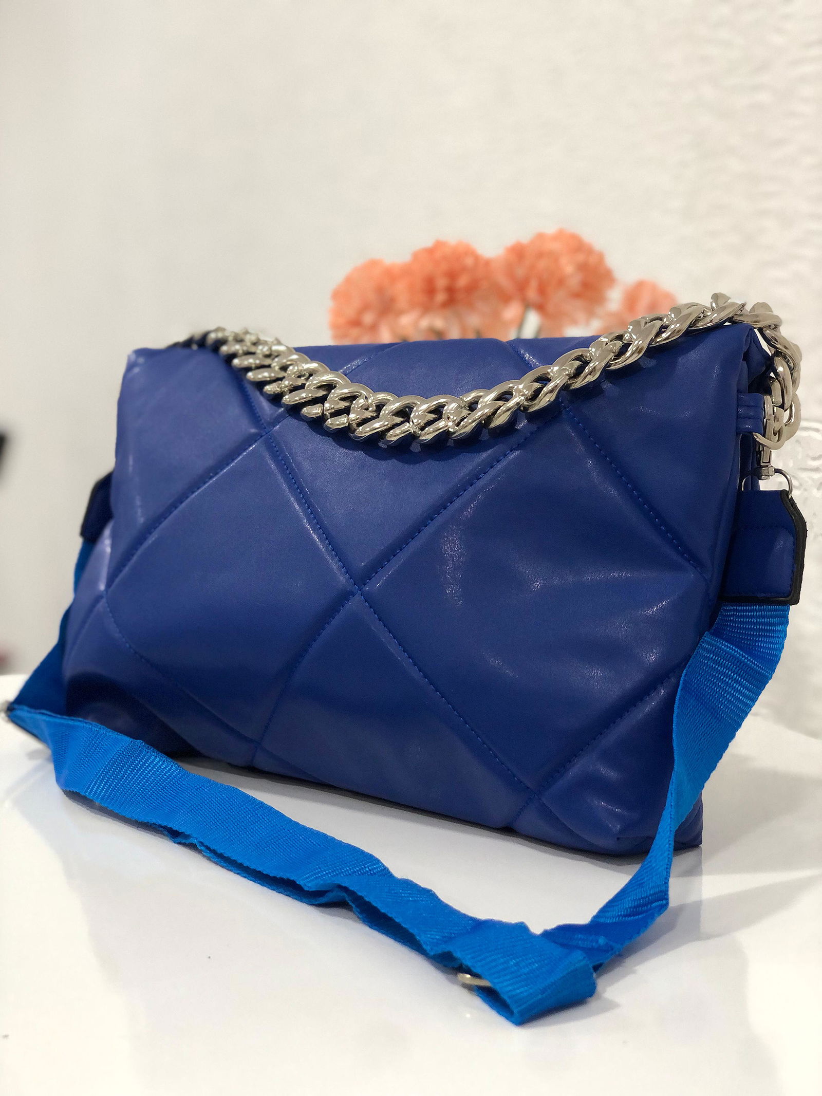 Zincir Aksesuarlı Çanta-1929 Mavi